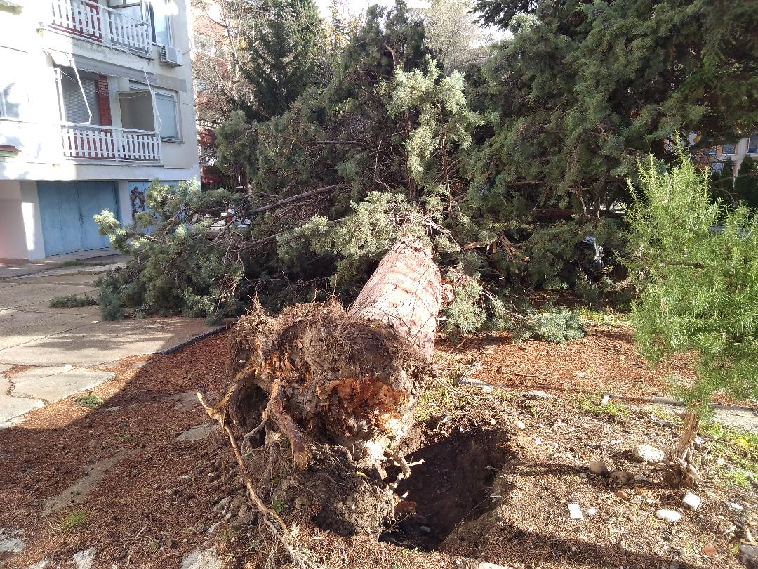 Невремето во Охрид откорна десетметарски бор кој целосно оштети автомобил паркиран во тревникот пред зградата во населбата Даљан. Жителите бараат Општината да го отстрани големото дрво кое е на земја веќе пет дена оти според нив се наоѓа на државно земјиште.