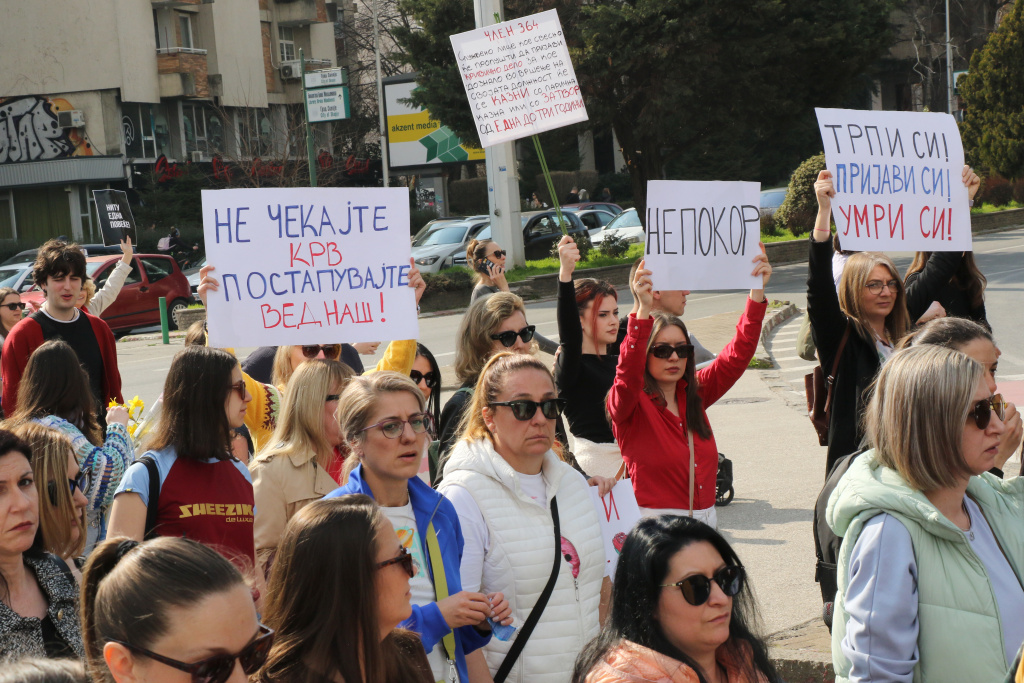 Под мотото „Нема да нѐснема“, голем број граѓани маршираа низ скопските улици со транспаренти „Нема слобода без слободни жени“, „Многу мајки трпат сѐ бидејќи немаат каде“, „Не чекајте крв, постапете веднаш“, истакнувајќи дека „институционалното потфрлање и избегнување одговорност жената го плаќа со своето здравје, живот и достоинствено постоење“.