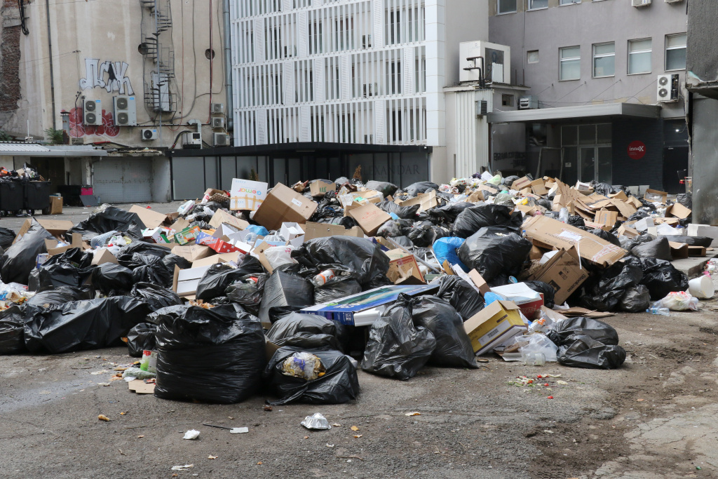 Д-р Даниловски вели дека заразните болести се пренесуваат преку урината, изметот, плунката и болвите на глодарите.  – Купишта ѓубре зад една од зградите на Плоштадот Македонија во најстрогиот центра во Скопје. (Фото: К. Попов)