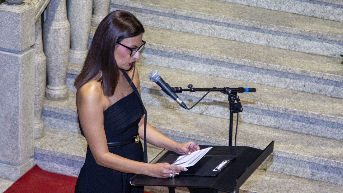 Директорката Манаскова на отворањето на новата постојана поставка во Археолошкиот музеј во септември годинава. (Фото: Археолошки музеј)
