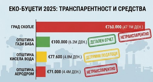 САКАМДАКАЖАМ.МК ги анализираше буџетите заштита на животната средина за 2025 година на Град Скопје и трите Општини Гази Баба, Аеродром и Кисела Вода, кои преку цела година, а особено зиме имаат највисоки вредности на аерозагадувањето.