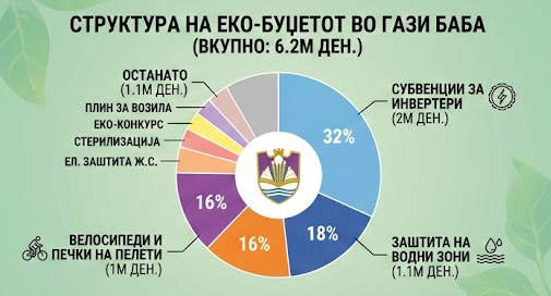 Општина Гази Баба располага со поголем буџет за заштита на животната средина во 2025 година, кој изнесува 6.200.000 денари (100.000 евра). Парите биле распределени на десет проекти, кои вклучуваат: